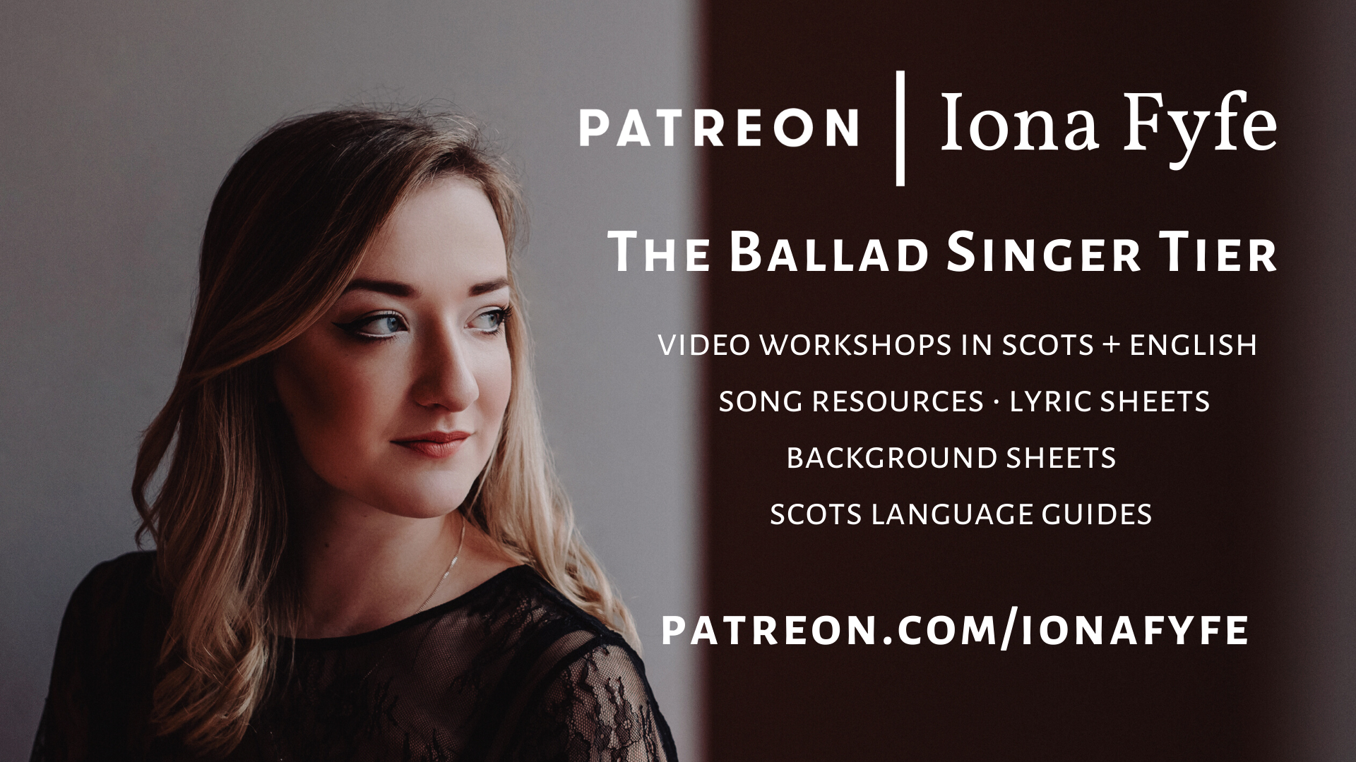 I’ve been creating traditional ballad workshops and song resources exclusively on Patreon. The latest workshop of ‘Earl Richard’, Child #68 is live now. To gain access to the video workshop, PDF lyric sheets, background info sheets and scots language guides for each ballad, join my Ballad Singer Tier on Patreon for just £5 per month. Gain access to the back catalogue of ballad workshops and add to your repertoire. Perfect for all ages and abilities. www.patreon.com/ionafyfe