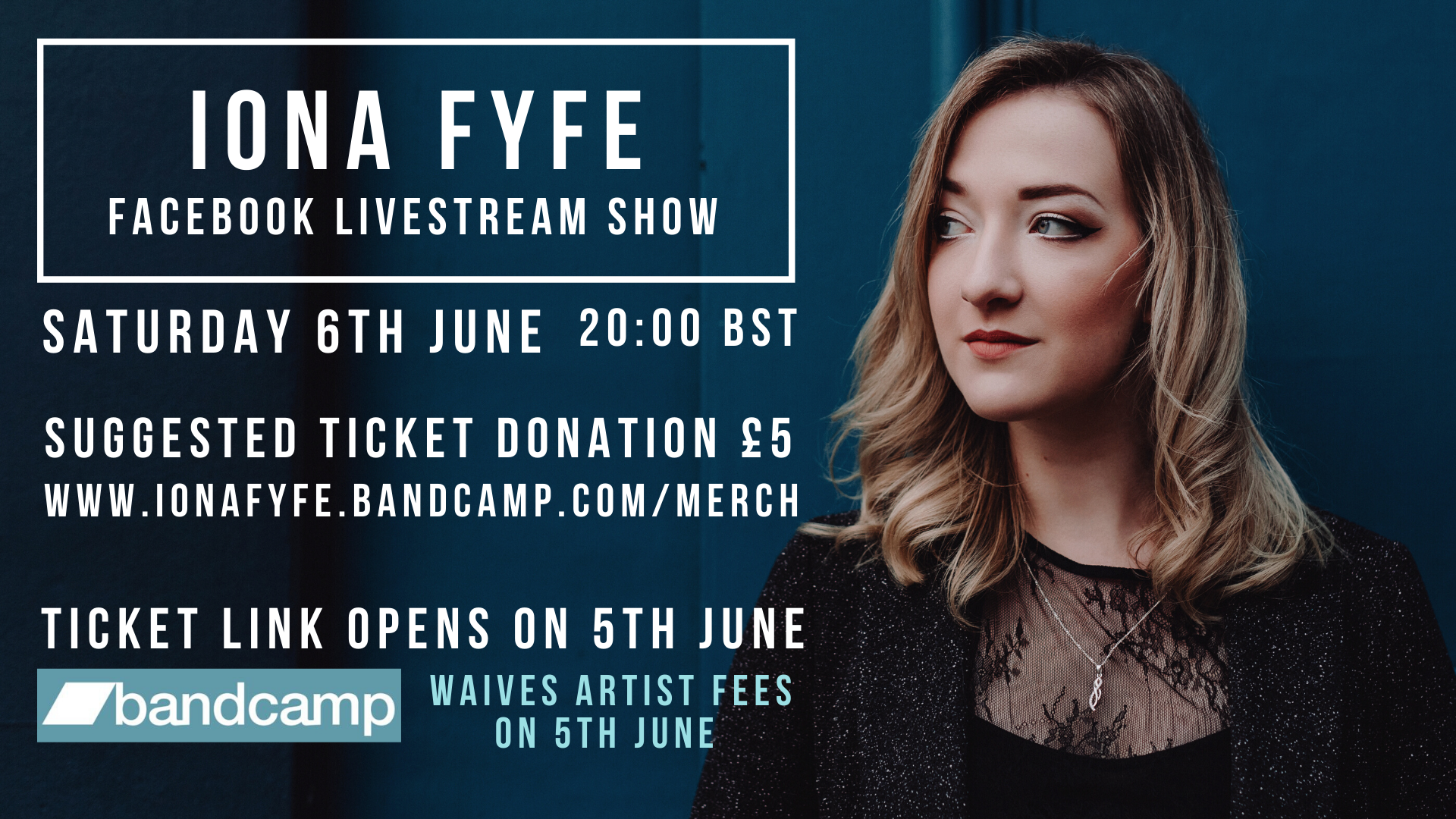 A suggested donation of £5.00 (or more if you want!) can be taken at: http://www.ionafyfe.bandcamp.com/merch/iona-fyfe-livestream-show-saturday-6th-june