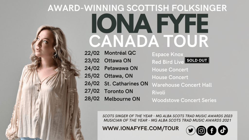 EXTRA DATES! Two more Canadian dates added! 🇨🇦🏴󠁧󠁢󠁳󠁣󠁴󠁿 I’ve touched down in freezing Montreal. I’m delighted that my show at the Red Bird in Ottawa is sold out. So we’ve added a house concert. I’ll also be visiting Melbourne ON also. 🎟️ Tickets at http://www.ionafyfe.com