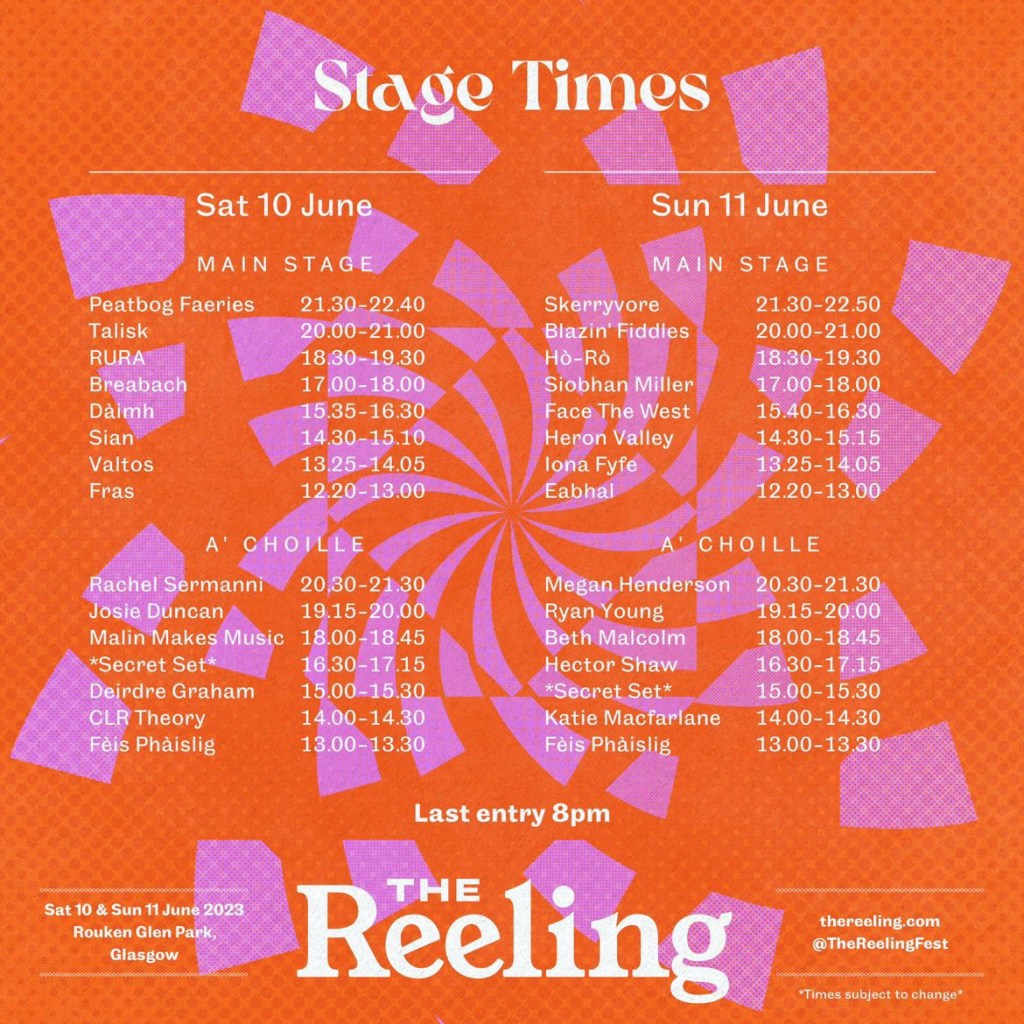 The Reeling Festival 🌿 Main Stage at Rouken Glen Park at 13:25 on Sunday 11th June ♥️ An amazing line up and family friendly festival.